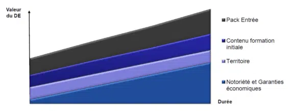 Il est à noter que certains réseaux distinguent droit d’entrée et formation initiale, et ne communiquent donc que sur une partie du ticket d’entrée total au réseau.