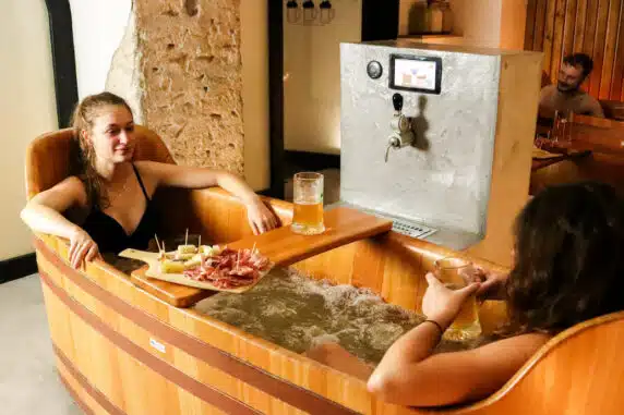 Notre objectif était de casser les codes du spa traditionnel en ajoutant une touche conviviale, où les couples peuvent non seulement se détendre, mais aussi partager un moment autour d’une bière artisanale alsacienne. Nous avons lancé notre premier spa à Strasbourg il y a bientôt trois ans et 90% de notre clientèle est aujourd’hui composée de couples, avec une répartition égale entre hommes et femmes.